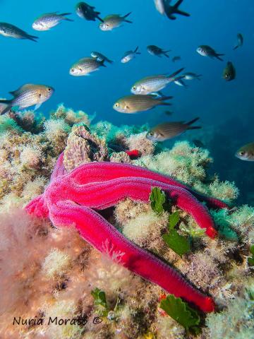 La geomorfología de esta parte de la isla está destacada por la presencia de “El Mogote”, un gran bolo de roca que se alza fuera del agua, en el cual comienza la inmersión y al que debe su nombre. Debido a su orientación este, es una inmersión realizada sobre todo con frentes de poniente o lebeche. Los fondos que encontraremos estarán formados por derrumbes y grandes rocas, donde podremos encontrar comunidades AFIC, en las plataformas y partes altas de las rocas y AEIC, en las pequeñas cavidades semioscuras generadas entre dos rocas. La fauna asociada será muy rica en esponjas, cnidarios, poliquetos, erizos y gran diversidad de peces como rascacios, morenas, vaquillas, salpas, mojarras, castañuelas, doncellas y fredis o gitanos, muy similar a los encontrados en La Cresta o la Pared Sur (La Boya). Dependiendo de la época podremos encontrar meros, dentones, espetones e incluso diferentes tipos de rayas. En ocasiones logramos observar caballitos de mar y delfines, tanto en superficie como nadando a 20 metros de profundidad.